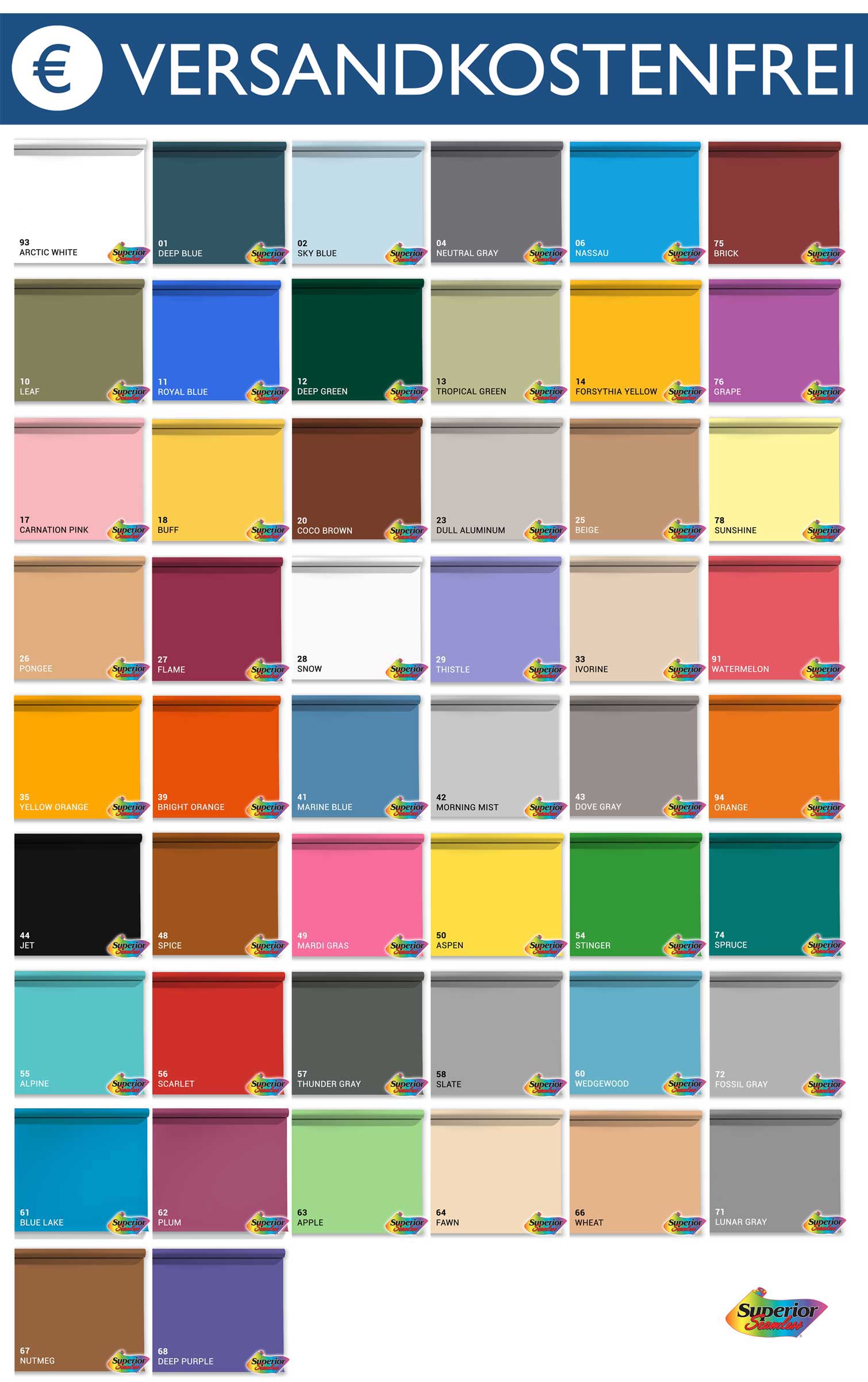 4× Superior Hintergrundpapier 2,72 × 11 m – Premium Studioqualität mit freier Farbwahl